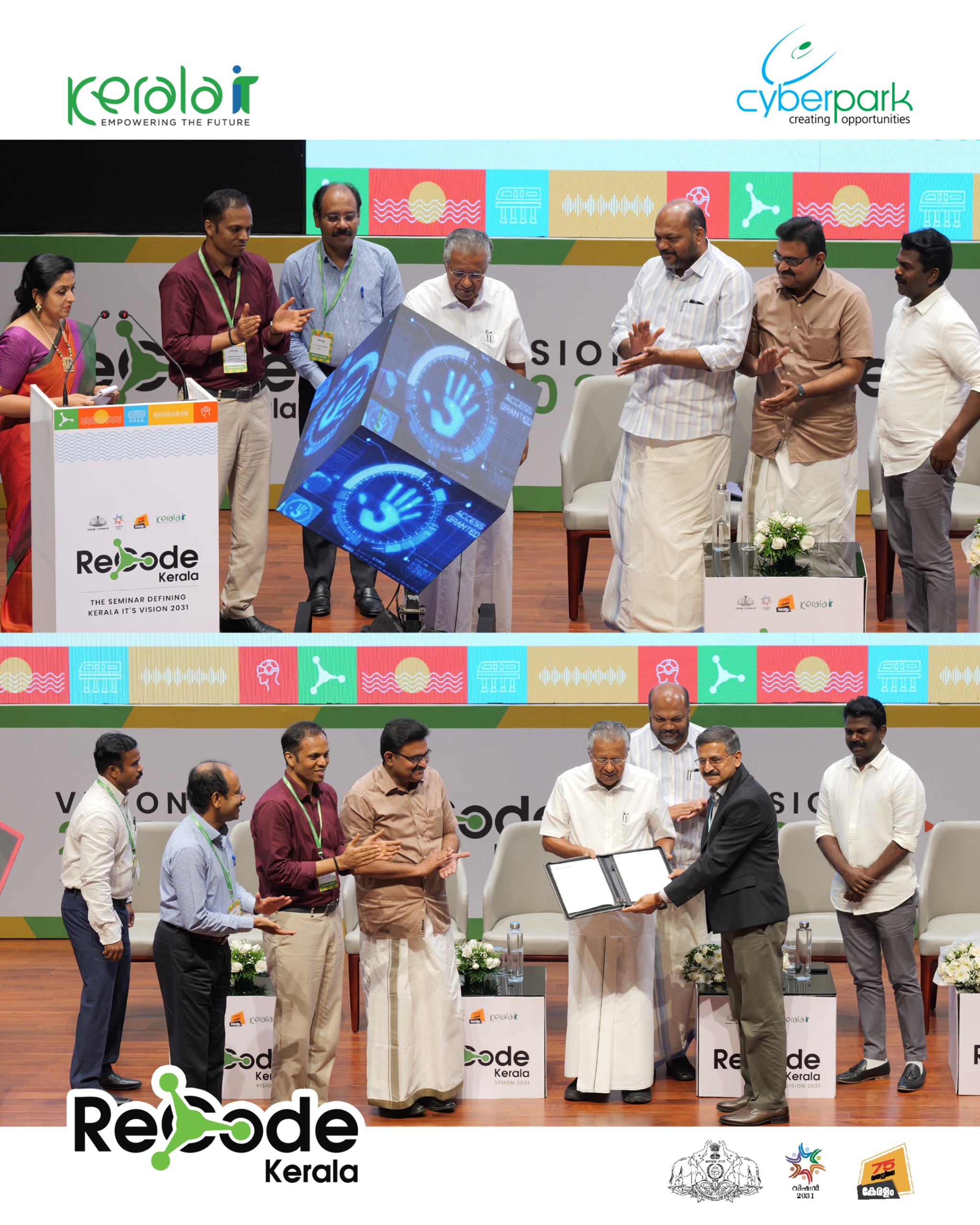 The ReCode Kerala — Seminar on Kerala’s IT Industry was inaugurated by Hon’ble Chief Minister Shri. Pinarayi Vijayan, marking a significant milestone in shaping the future of Kerala’s digital transformation. The event was graced by Shri. P. Rajeev, Minister for Law and Industries, Seeram Sambasiva Rao IAS, Secretary, Electronics & IT Department, Mr. Susanth Kurunthil, CEO, Cyberpark & Infopark, and Mr. Tony Thomas, CEO, Zoho, alongside other distinguished government officials and IT industry leaders.